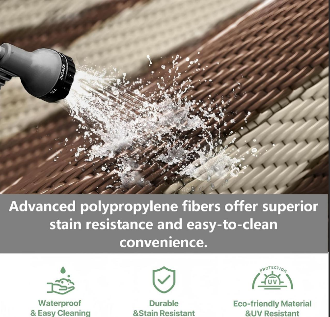 Merkmale Reversible, schmutzabweisende Strohteppiche: Der Outdoor-Teppich für die Terrassenrei...
